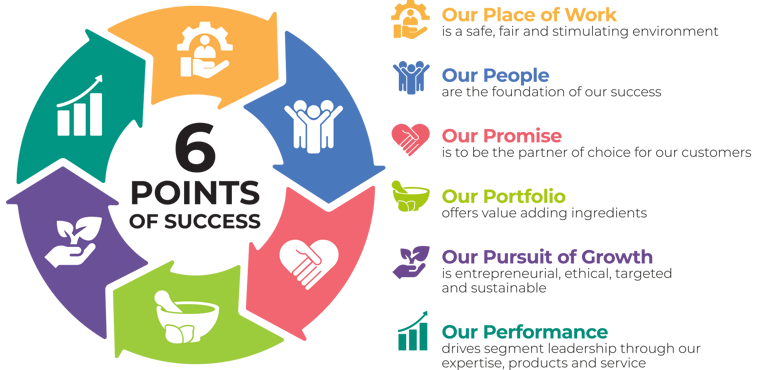 While we’re a wide-ranging and diverse organisation, all our businesses share the same 6 Points of Success which guide our day-to-day activities as well as our long-term planning.